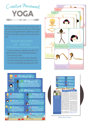 This set gives you everything you need to introduce yoga in a fun way through a creative movement story. While reading the story each paragraph illustrates a different yoga position. Children can also follow the yoga cards to do yoga with their peers. WHATS INCLUDED: (10 Pages) + One learning experience explanation page with plus bonus touch and feel board experience. + One creative story poster. + Two sheets to form an A3 size creative story poster. + Two sheets including eight small yoga position cards. + Four sheets including eight large yoga position cards.