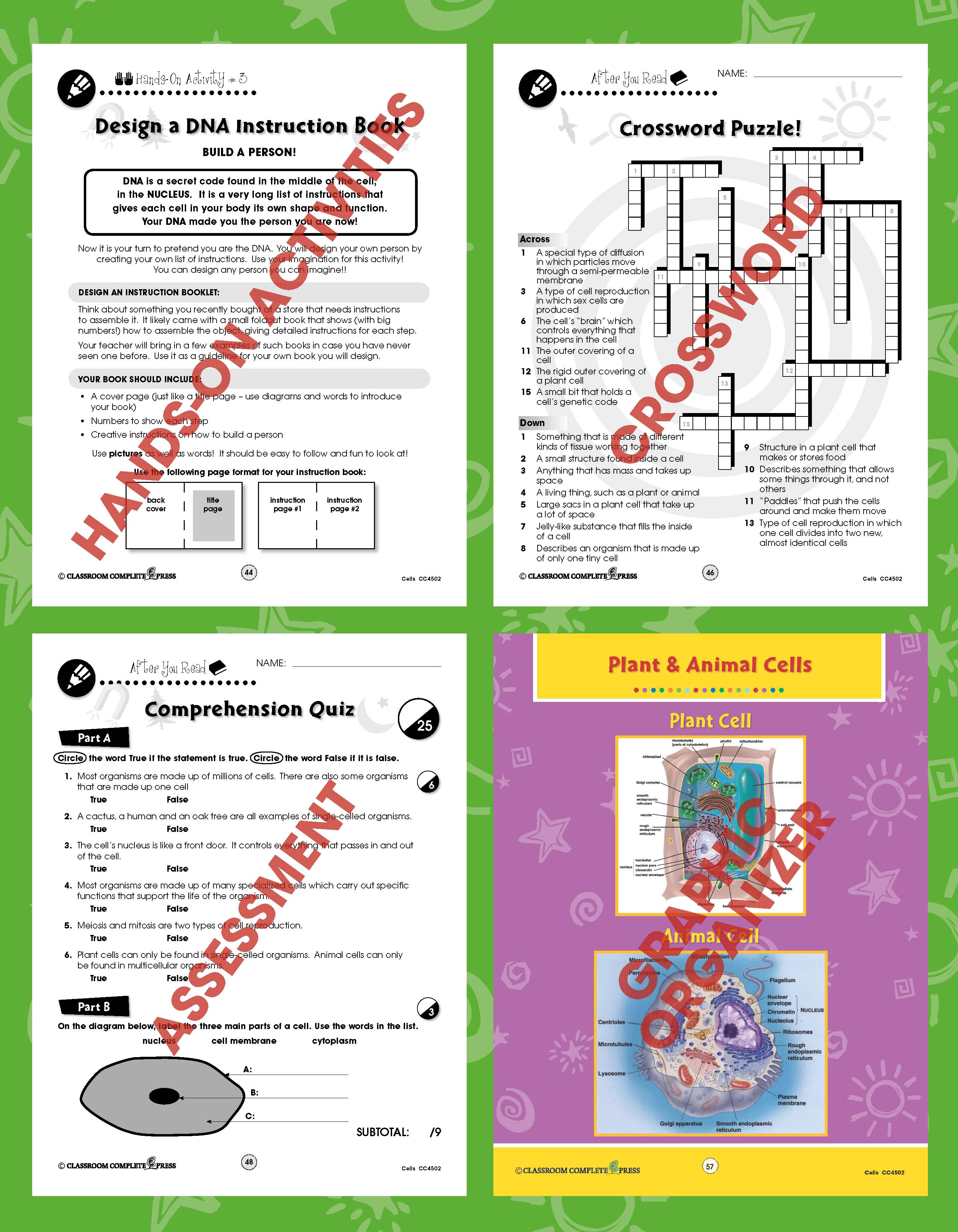 Cells are the building blocks of life. We take you from the parts of plant and animal cells and what they do to single-celled and multi-cellular organisms. Using simplified language and vocabulary concepts we discover human cell reproduction as well as diffusion and osmosis. About the Resource: Our resource provides ready-to-use information and activities for remedial students using simplified language and vocabulary. Ready to use reading passages, student activities and color mini posters, our resource is effective for a whole-class, small group and independent work. ************************************************************************ Visit our website!