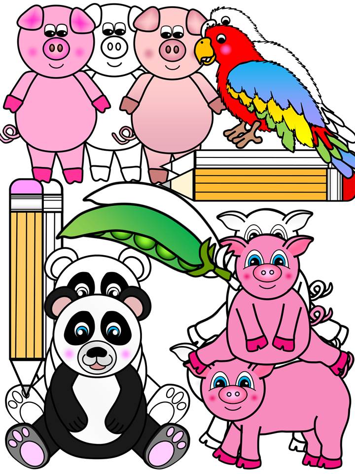 Mr. Pig character clipart- 2 colour+1 bw Piglet standing clipart- 1 colour+1BW Piglet sitting clipart-1 colour+1 BW parrot clipart-1 colour+2 BW peas in pod clipart- 1 colour+1BW Panda clipart-1 colour+1 BW Penguin (girl) 3 colour+6 BW Penguin (boy) 3 colour+6 BW pizza slice- 1 colour+1BW pizza whole - 1 colour+1BW popcorn-full- 1 colour+1 BW Popcorn (empty box)- 1 colour+1 BW Popcorn Kernel (1 colur+1 BW) potato- 1 colour+1 BW Pumpkin- 1 coluor+1 BW Pear- 1 colour+1 BW pencil- 2 colour+2 BW peanut-1 colour+1bw pot- 2 colour+1BW