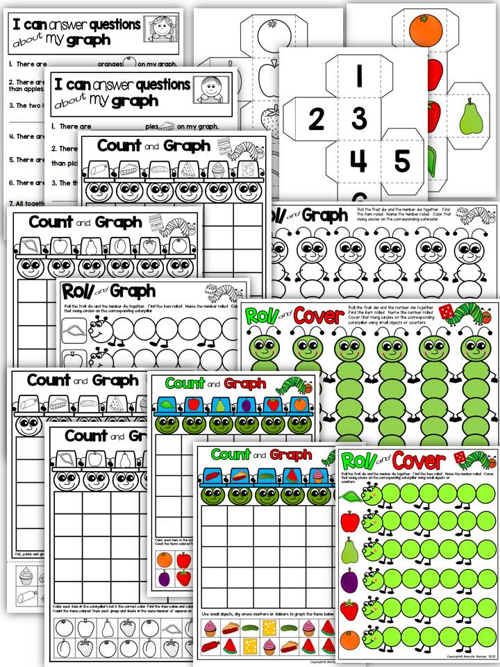 This package offers an INSECTS- Caterpillar Roll and Cover or Roll and Graph Math Center Activities. The tools in this package offer laminated work mats to be used with objects as well as black/white printable versions The tools in this package are designed to work with butterfly study unit, Eric Carle The Very Hungry Caterpillar book study unit and an insects study unit. **