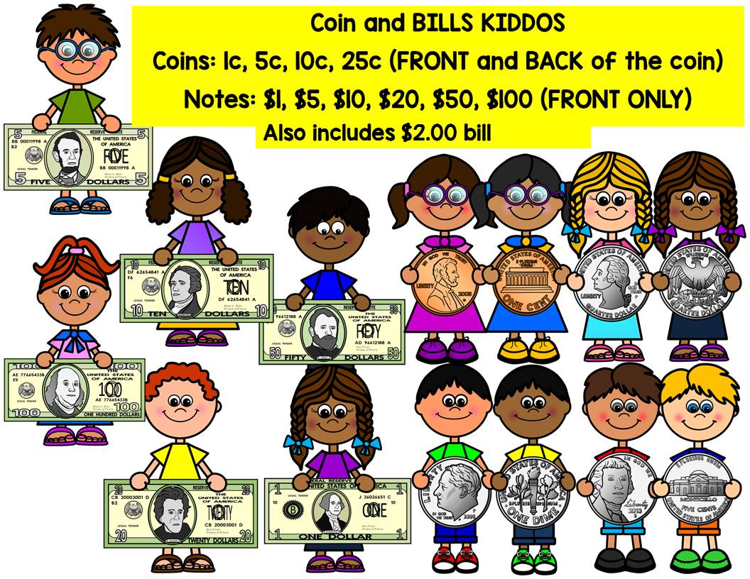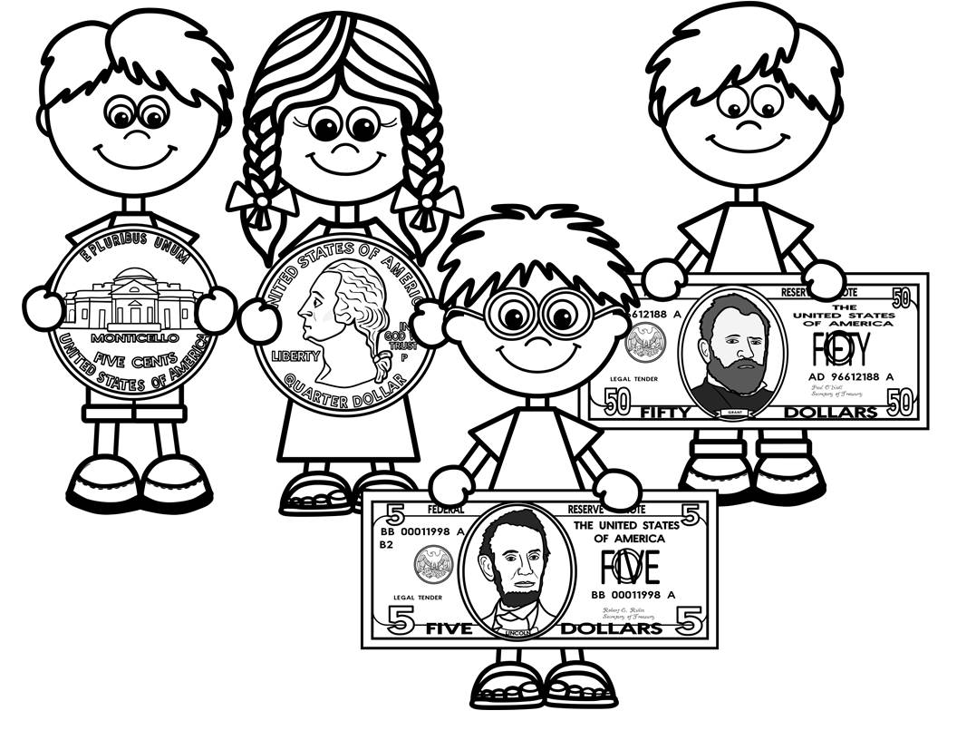 This package includes a set of kids holding U.S money- both coins and bills are included. Kids holding money set 22 color and 15 black/white