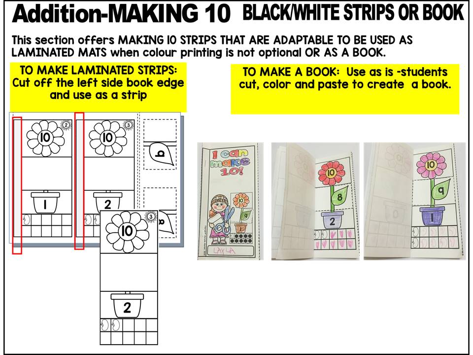 (14) ADDITION STRIPS where students add numbers up to 10- colour (14) ADDITION STRIPS where students add numbers up to 10 - BLACK/WHITE
