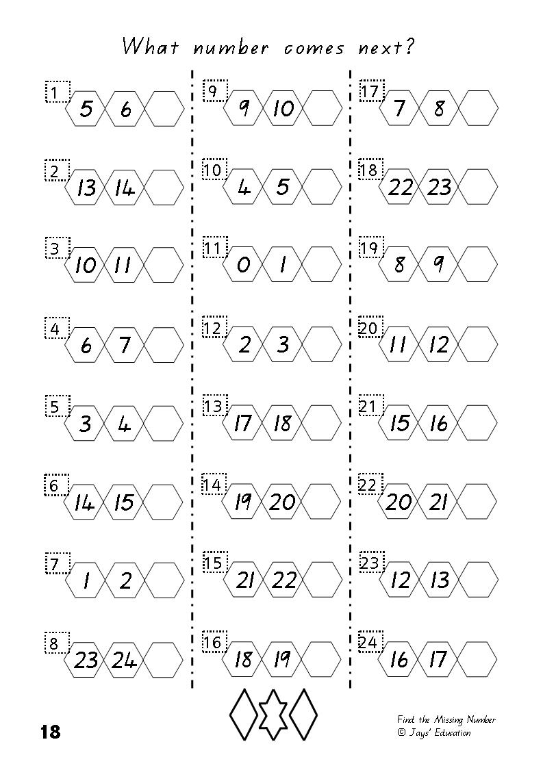 Practice to count in sequence and learn the position and order of numbers on the number line. Count on or count back to find and fill in the missing number.