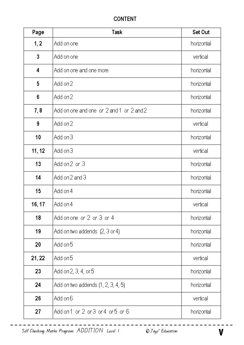 This workbook is an essential tool for teachers, parents and students to teach and learn to add. The activities are set out in gradual sequential order, so students can learn to add one step a time, from adding one, then one and another one, two, three and so on... using the adding on method. Helpful addition strategies are included. The instructions advising how to use the LUK program are included. The use of 24 questions (problems) on each page makes the program compatible with the LUK self checking system. Each page has a grid with answers and a LUK code key. Se more about LUk at LUKselfChecking_Programs.